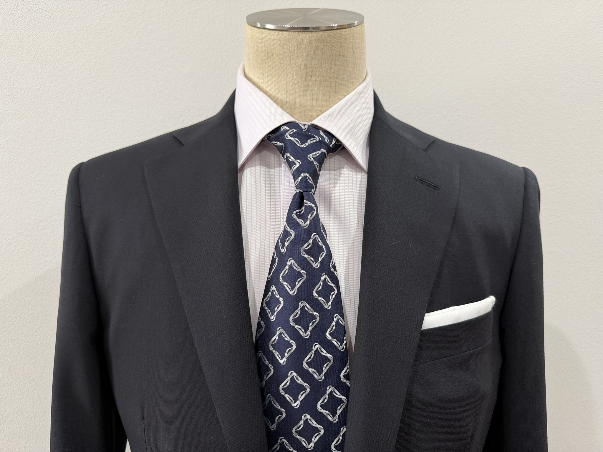 落ち着きのある雰囲気なネイビーの2ッ釦スーツも、都会的な雰囲気が