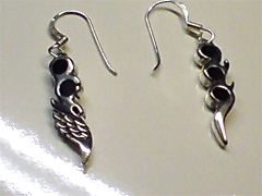 意味:右のピアスは羽根と爪でオニキスを携えています。このオニキスは成功を意味しています。左のピアスは波間にオニキスが埋め込まれています。このオニキスは魔除けを意味しています。